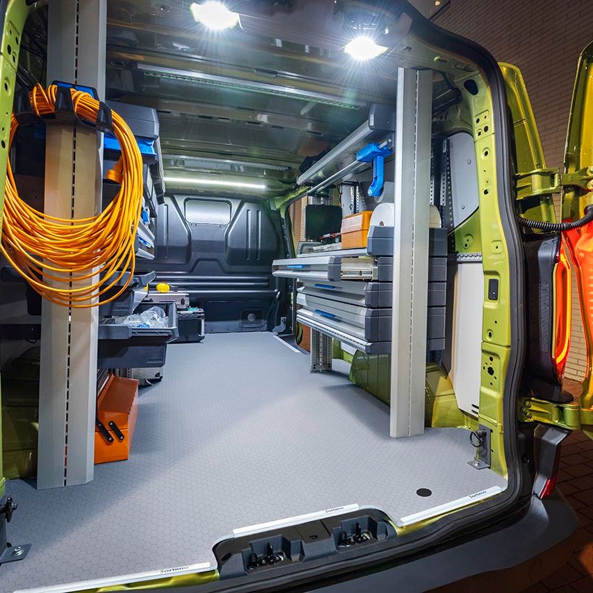 Fie că ești pe teren sau în deplasare, modelul Transporter cu acoperiș înalt3 este făcut pentru a fi transformat într-un atelier profesional pe patru roți. Spațiul său generos de încărcare oferă o mulțime de loc pentru instalarea soluțiilor potrivite pentru aproape orice cerință a meseriei tale – de la sistemul flexibil de rafturi până la suporturile practice pentru acoperiș, pentru depozitarea uneltelor și materialelor.